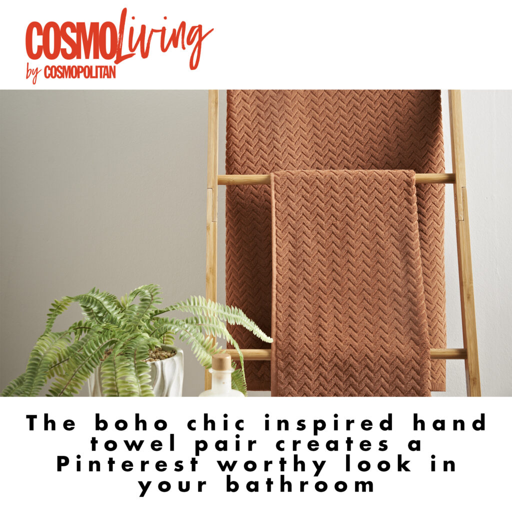 The Cosmo Living Chevron Embossed Hand Towel Pair are luxuriously soft, perfect for making a statement in your bathroom. The boho chic inspired towel is a great way to add personality and texture to your bathroom to create a Pinterest worthy look.
