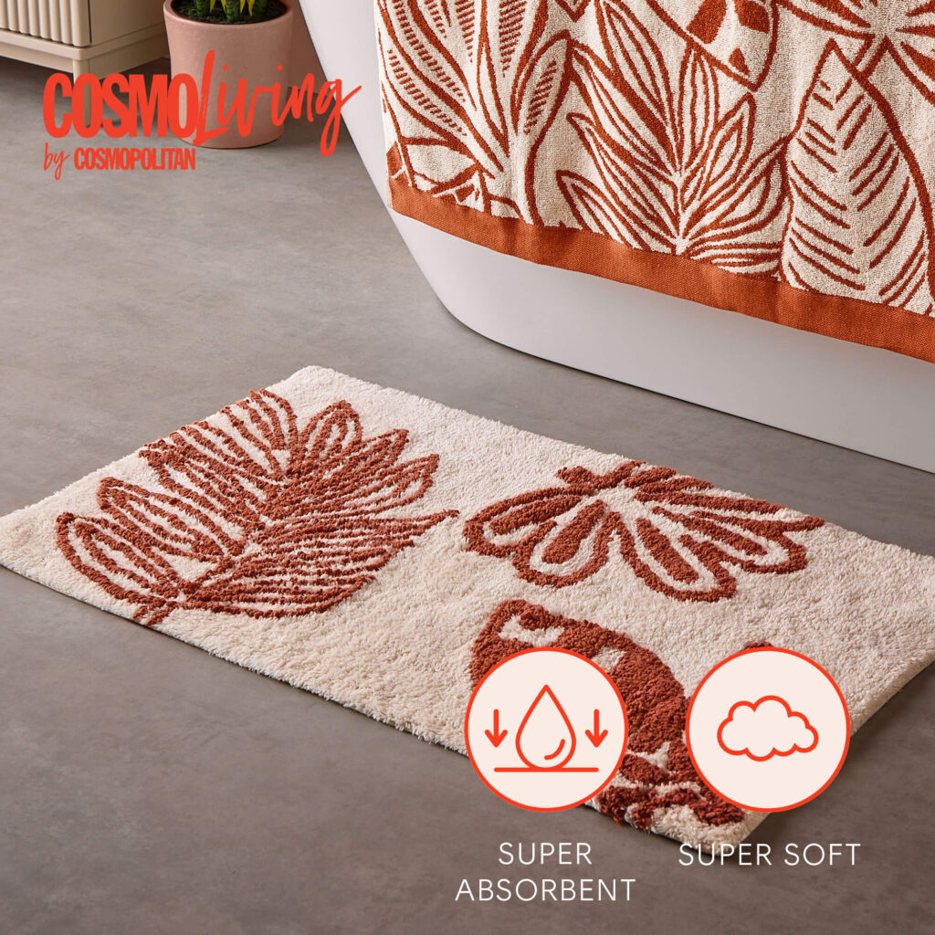 Crafted from sumptuously soft 100% cotton and designed with style in mind, the Cosmo Living Patterned Cotton Bathmat features a vibrant floral design, perfect for making a bold statement in your bathroom.