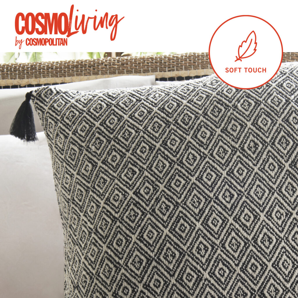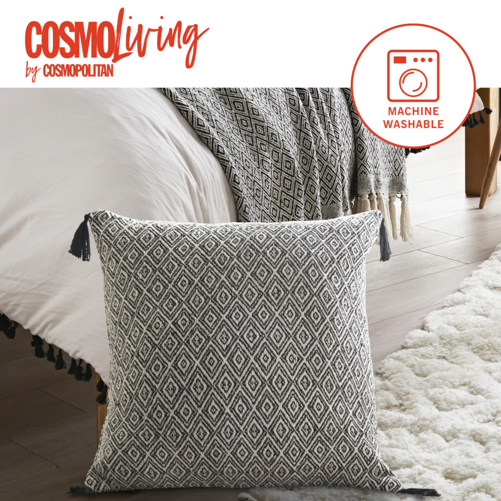 - MAKE A STATEMENT: Transform any room into a boho chic dream with the Cosmo Living Geometric Print Tassel Cushion and Throw.