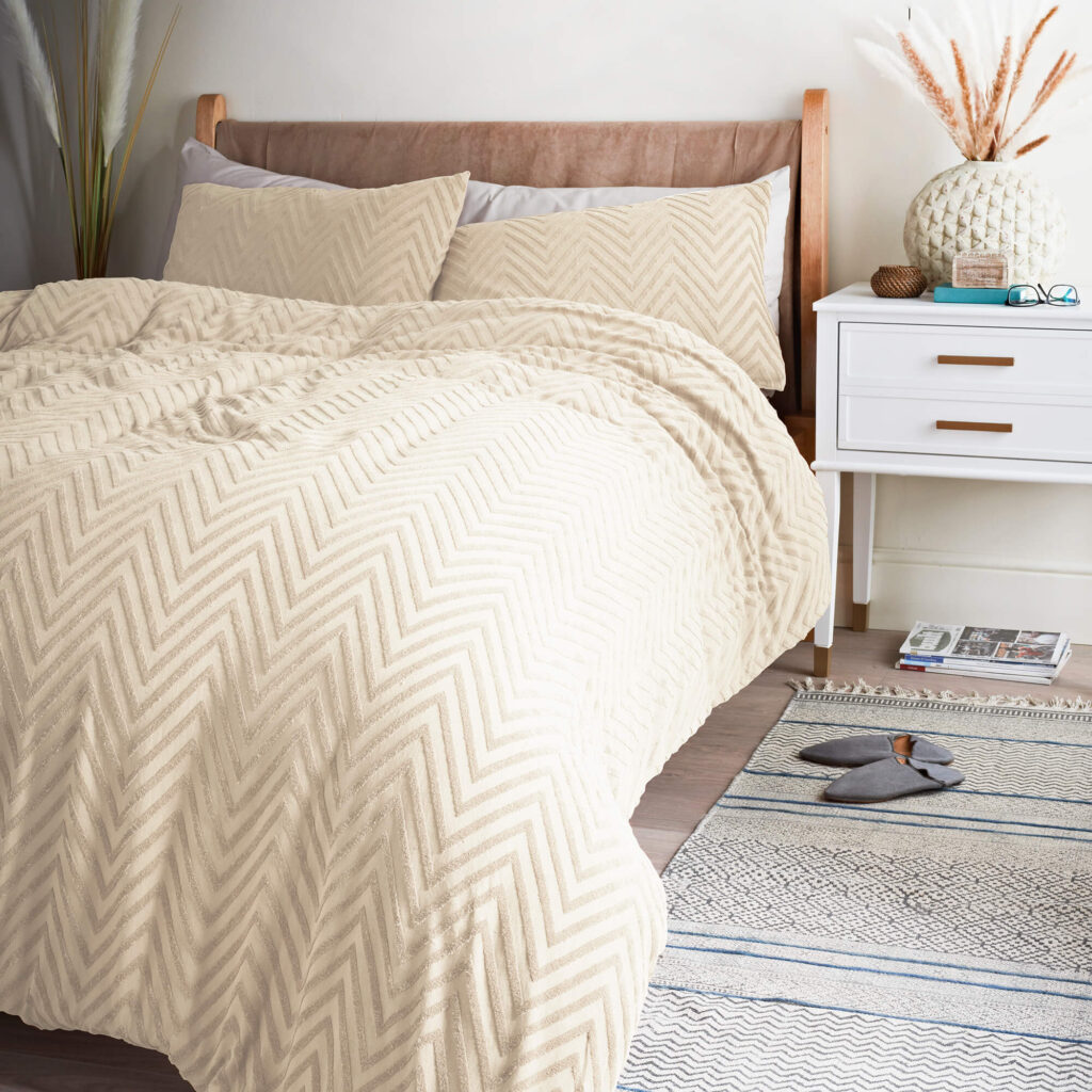 Cosmo Living Ivory Tufted Chevron Duvet Set