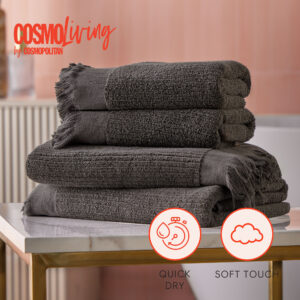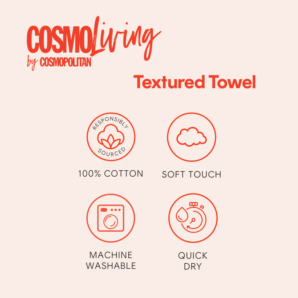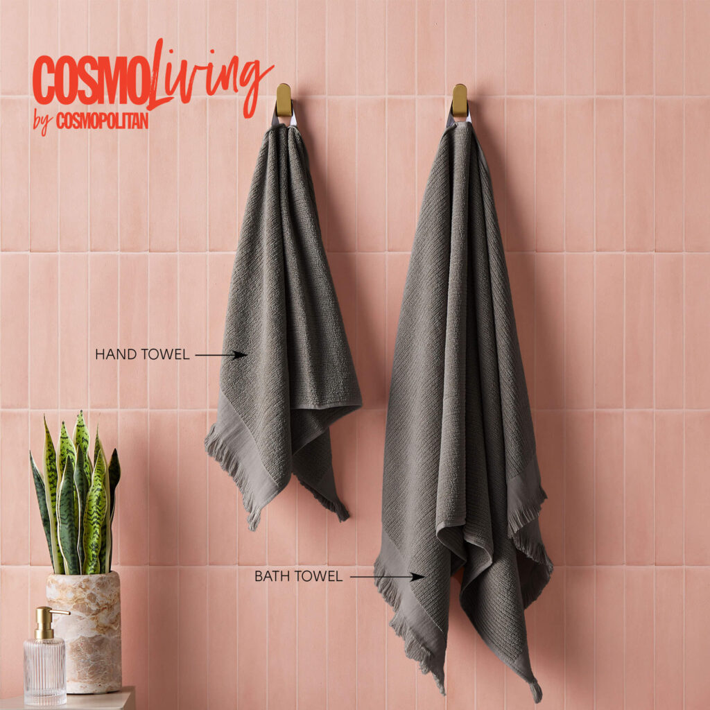 Soft to the touch, the Cosmo Living Textured Cotton Towels feature a ribbed texture and raw hem, perfect for making a statement in the bathroom.