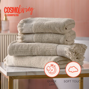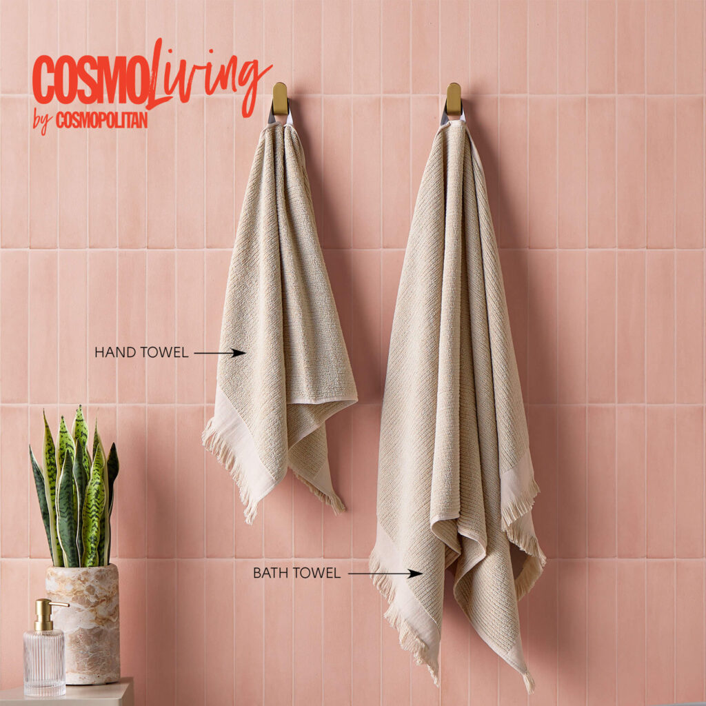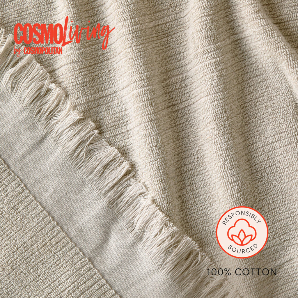 Soft to the touch, the Cosmo Living Textured Cotton Towels feature a ribbed texture and raw hem, perfect for making a statement in the bathroom.