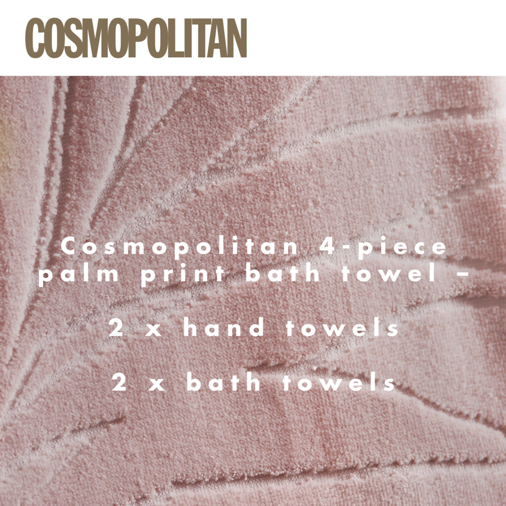 The Cosmopolitan Palm Print 4-Piece Towel Bundle is inspired by opulent vintage glam, perfect for making a statement in your bathroom. Soft to the touch, the Palm Print Bath Towels and Hand Towels are luxuriously fluffy, ideal for after a long bubble bath or relaxing shower, for a spa-like feeling at home.