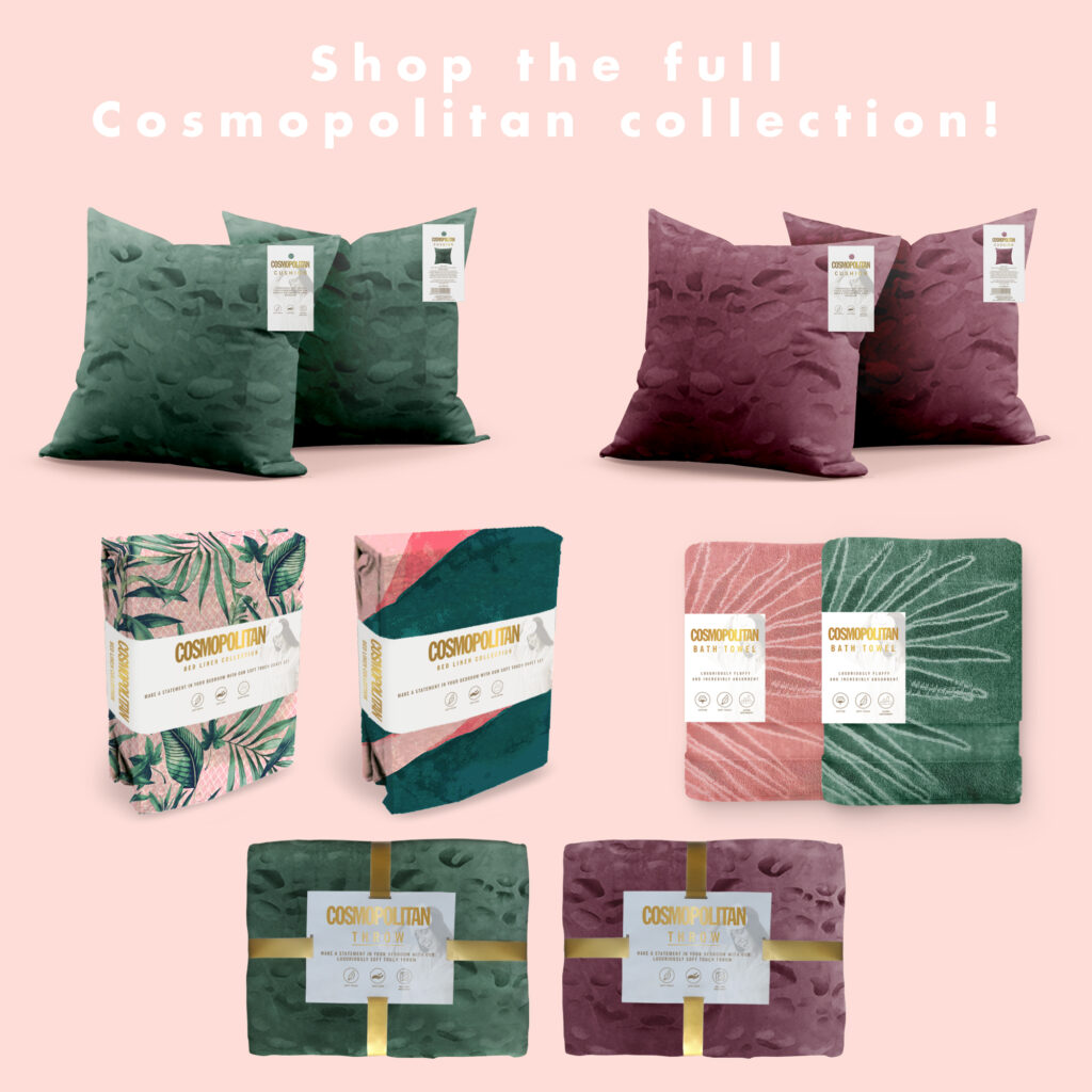 Complete the look with our Cosmopolitan Palm Print Hand Towels.