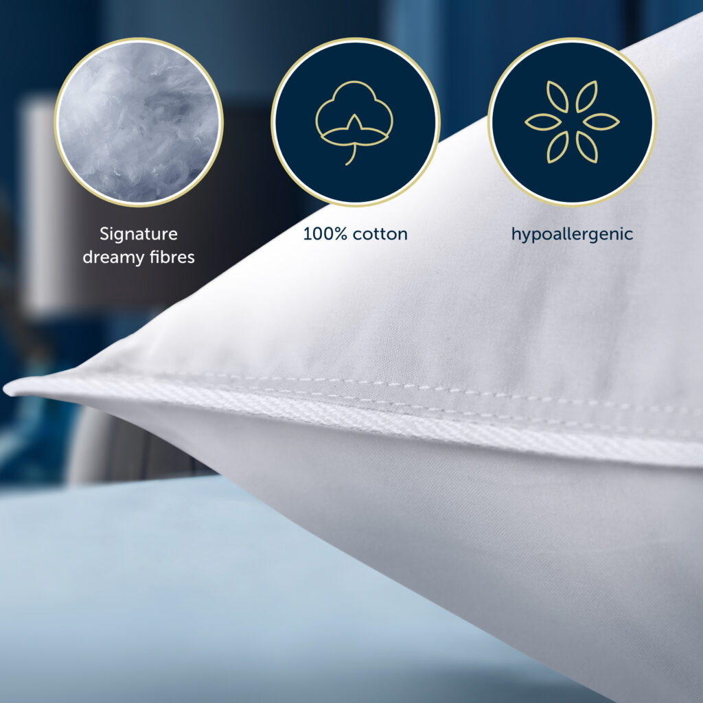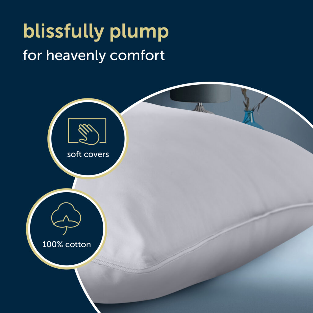 Experience sumptuously soft and blissfully plump pillows for heavenly comfort that lasts. Encased in a blissfully breathable cotton cover for luxurious quality you can count on.