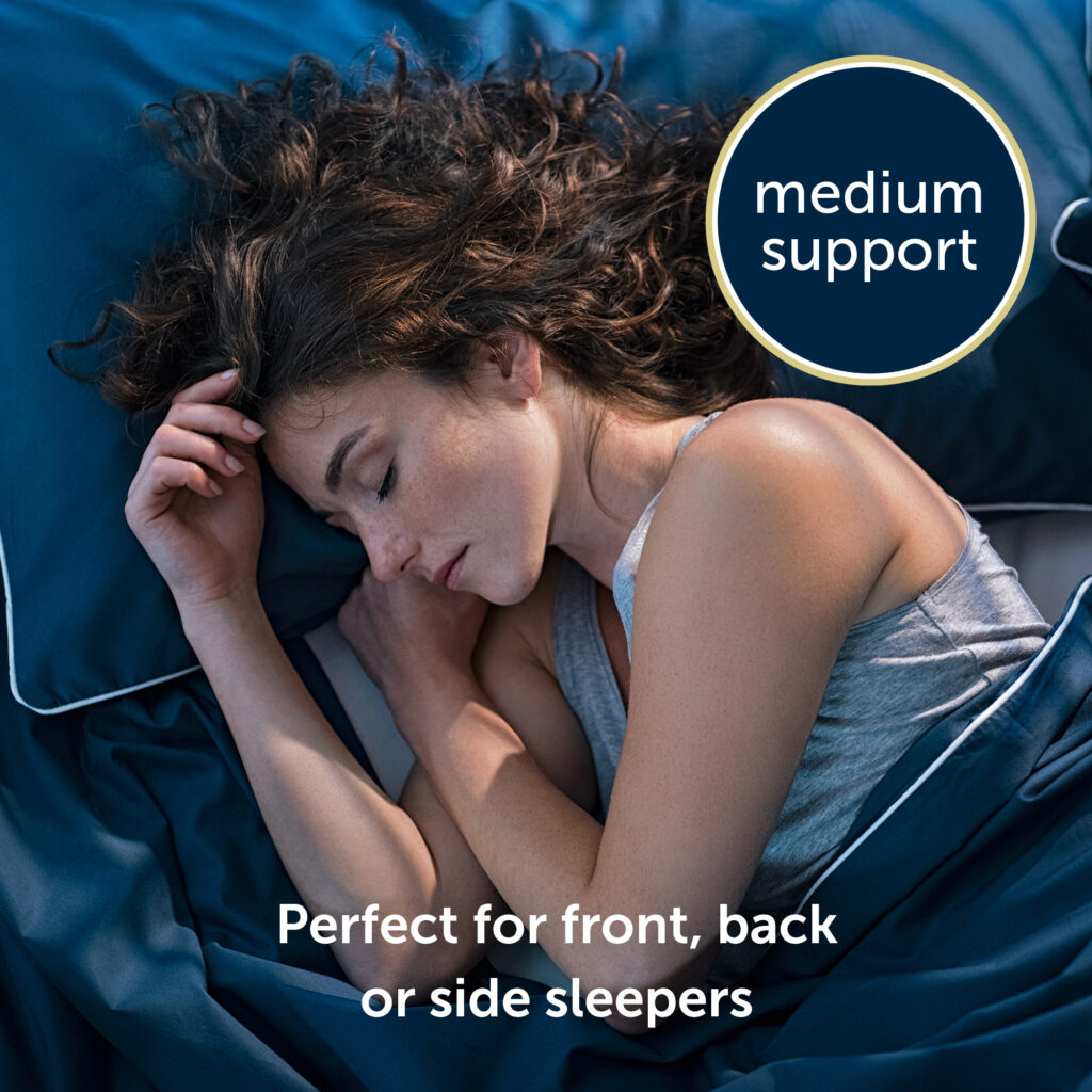 - PERFECT FOR EVERYONE: Medium firmness, perfect whether you sleep on your side, back or front. Use one pillow for softer comfort, or double up if you like firmer support.