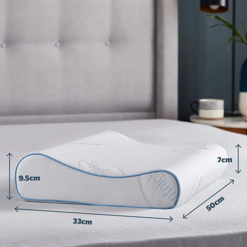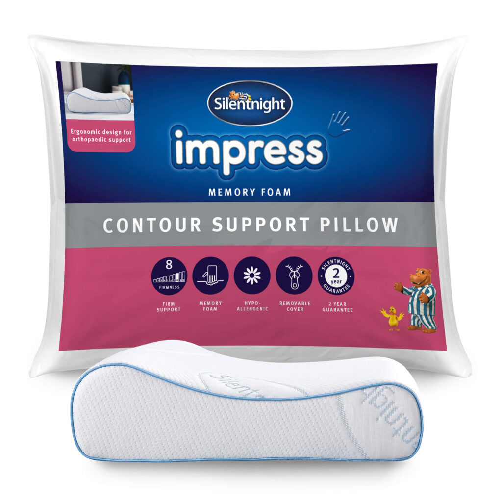 Stay supported with The Silentnight Contour Support Pillow. Made with memory foam that is ergonomically sculpted to give maximum support and comfort to your head and neck. This special shape follows the natural contours of your head encouraging full cervical muscle relaxation and improved body alignment. Unlike traditional pillows that may go flat over time, the Contour Support Pillow retains its shape for long-lasting support. The pillow comes with handy breathable pillowcase that is specially designed to fit the unique size and shape of the pillow.