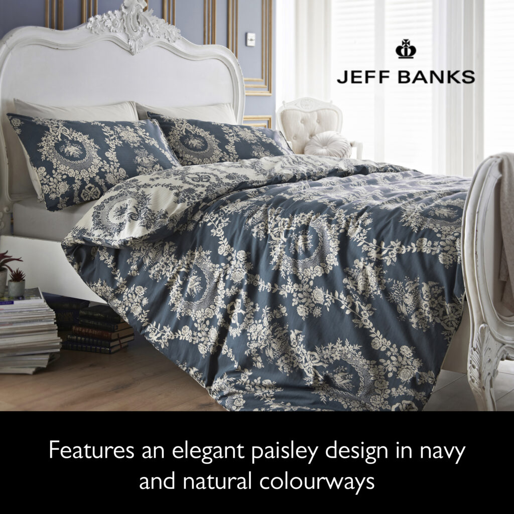 - CLASSIC DESIGN: Designed by British fashion designer Jeff Banks, this set features an elegant paisley design in navy and natural colourways.