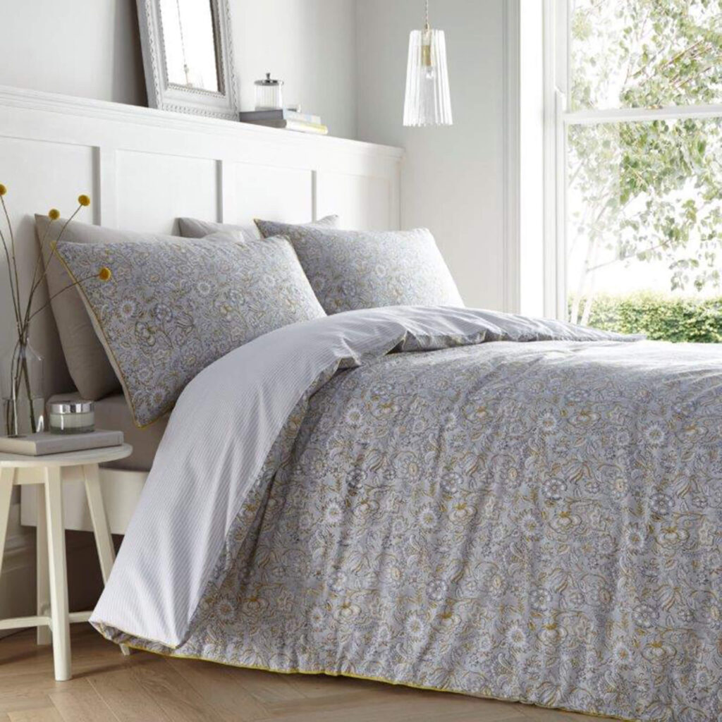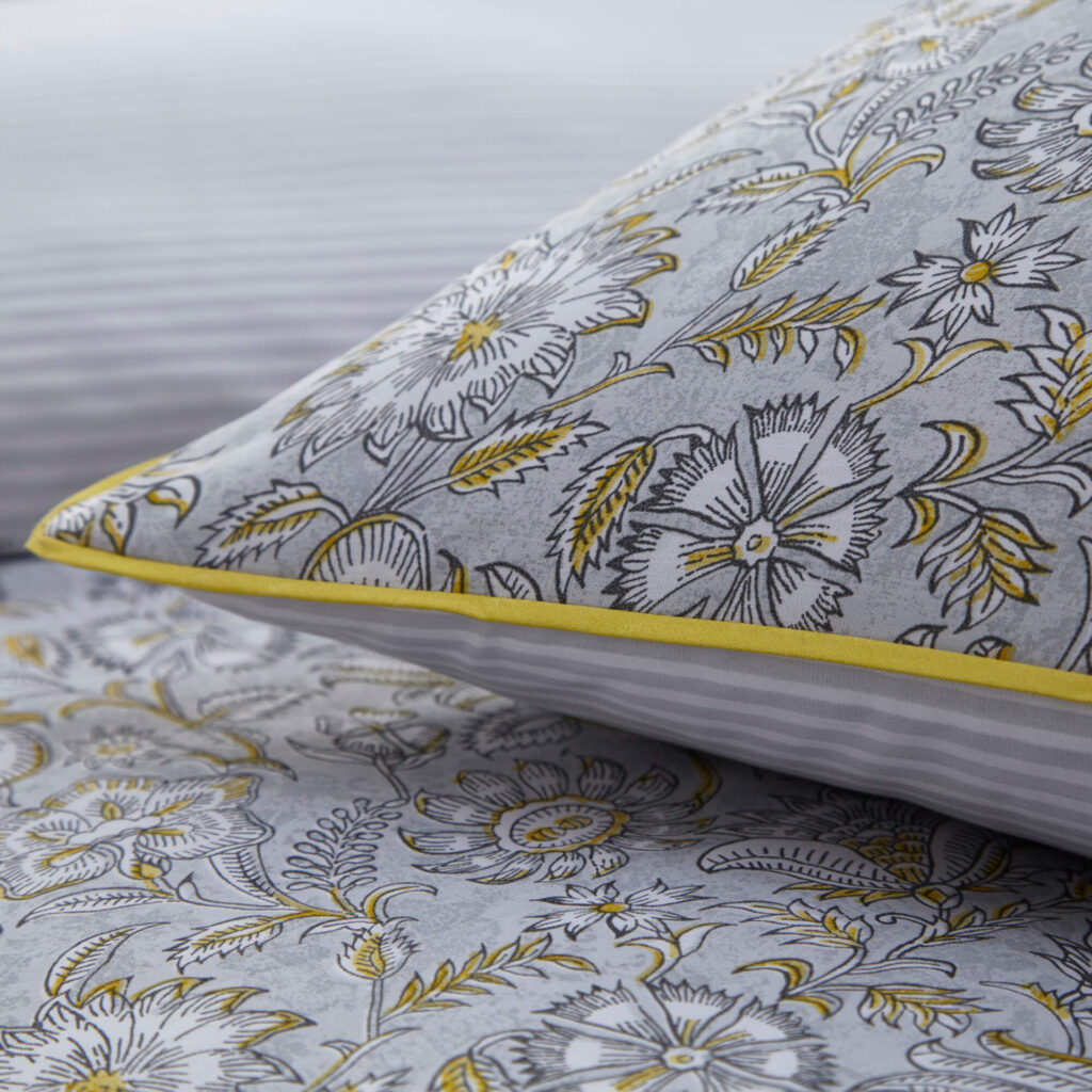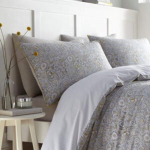 Add a touch of comfort and style to your bedroom with this beautiful 200 thread count, 100% cotton duvet set from Jeff Banks Pour La Maison range. The Metz duvet set features a floral design complete with ochre trim the reverse striped pattern gives you an option to change the look of your room. The soft to the touch natural cotton material is breathable, keeping you cool and allowing your skin to breathe for a blissful night’s sleep.
