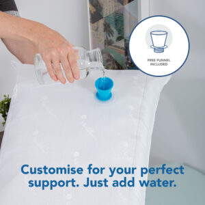 - CUSTOMIZE TO YOUR COMFORT: Our Water Pillow can be personalised. Simply adjust the water level to make your pillow soft, medium, firm or even medium-firm!