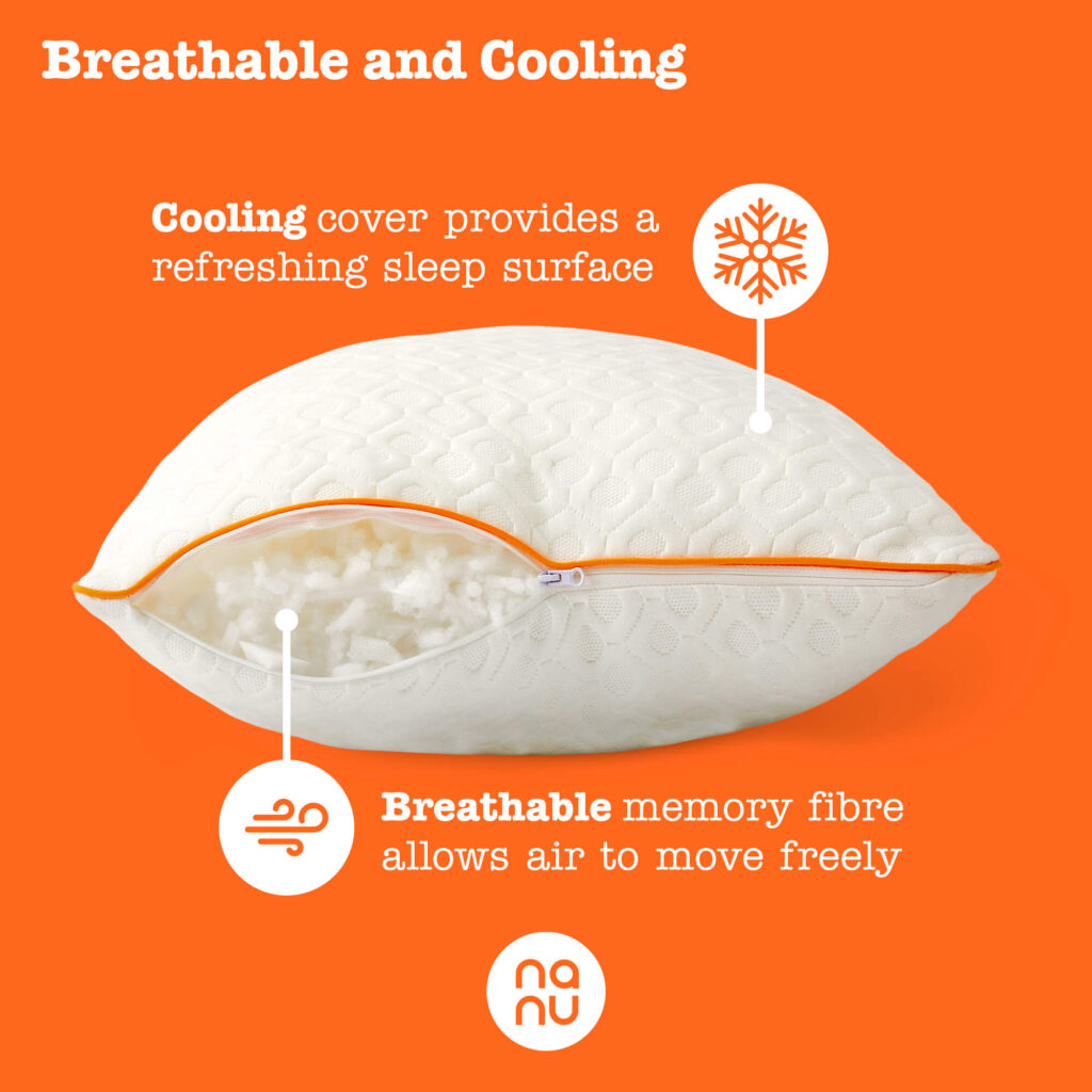 - BREATHABLE & COOLING: Unlike traditional memory foam pillows, the breathable qualities of Memory Fibre filling allow air to move freely to prevent heat accumulation. Cooling technology in the cover also helps to provide a refreshing sleep surface.