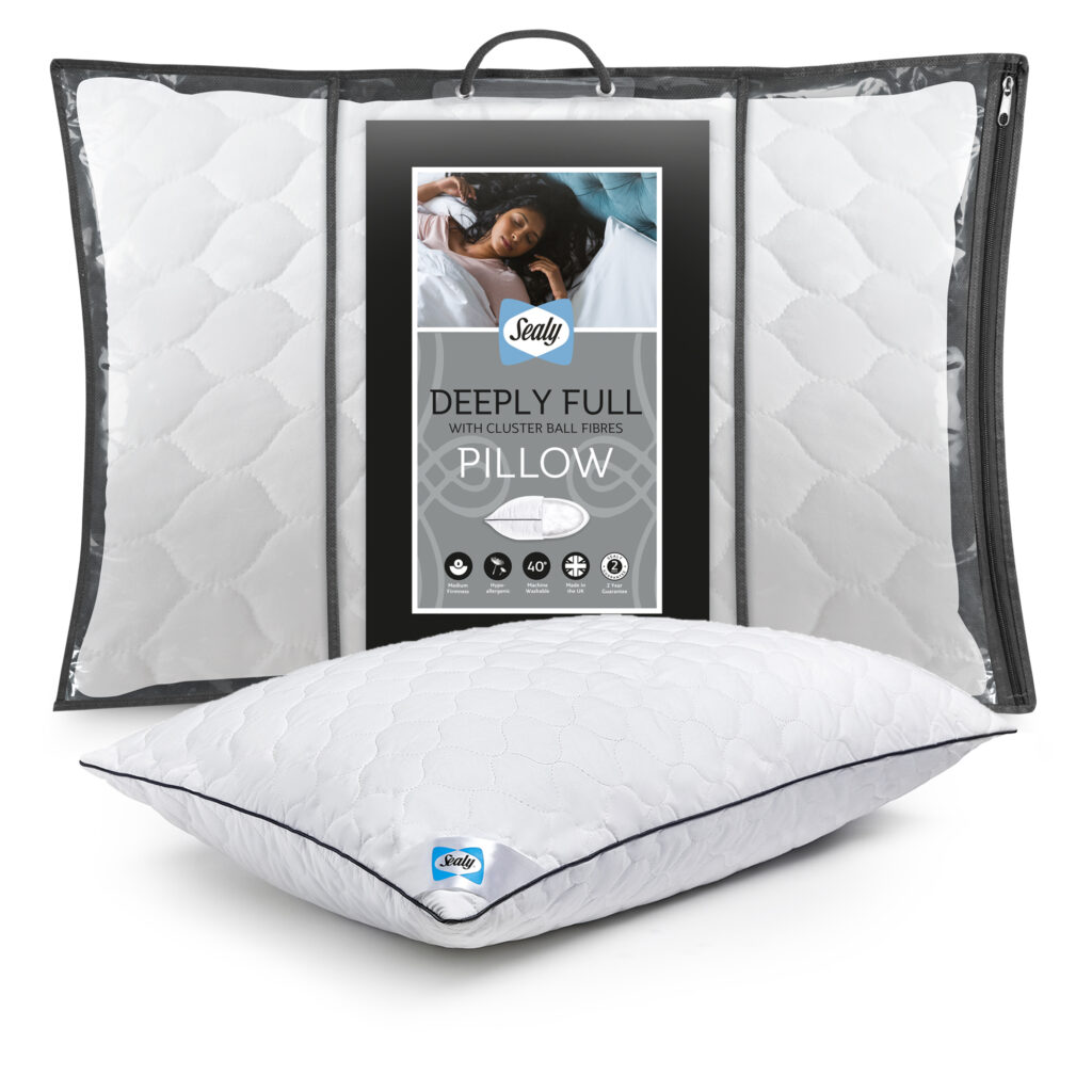 The Sealy Deeply Full Pillow Pair has been expertly crafted to enhance your sleep. Inside the pillows is luxurious Fibadown™ cluster ball filling which offers a soft and silky down-like feeling. Generously filled to offer the ultimate culmination of gentle support for the head and neck along with heavenly comfort.