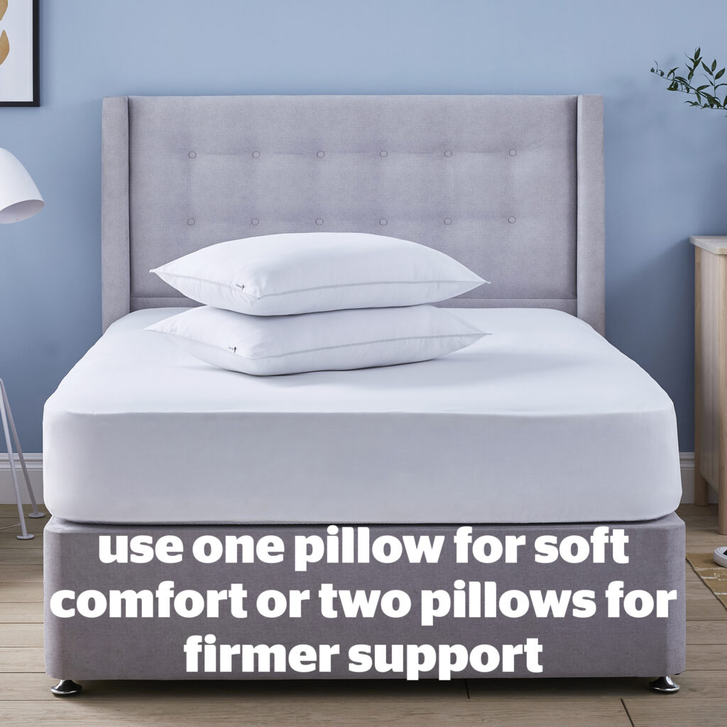 - SOFT/MEDIUM SUPPORT: Use one pillow for soft comfort or two pillows for firmer support.
