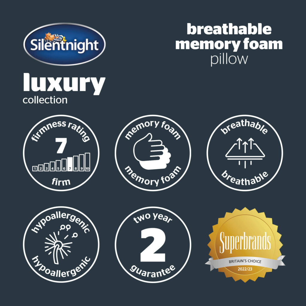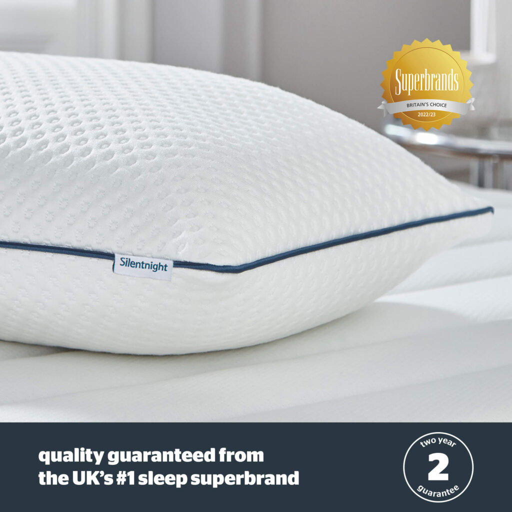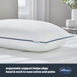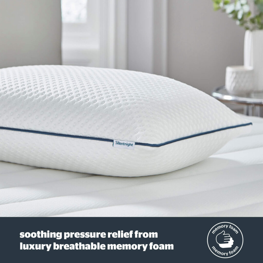 The Silentnight Luxury Breathable Memory Foam Pillow features a premium shredded memory foam filling to offer responsive support and breathable comfort. Air moves freely between the spaces of the foam inside your pillow much more than a standard memory foam block. The shredded memory foam responds to your sleeping position to help ease neck pain by keeping your head and neck aligned, offering ergonomic support throughout the night. The ideal pillow for back and side sleepers.