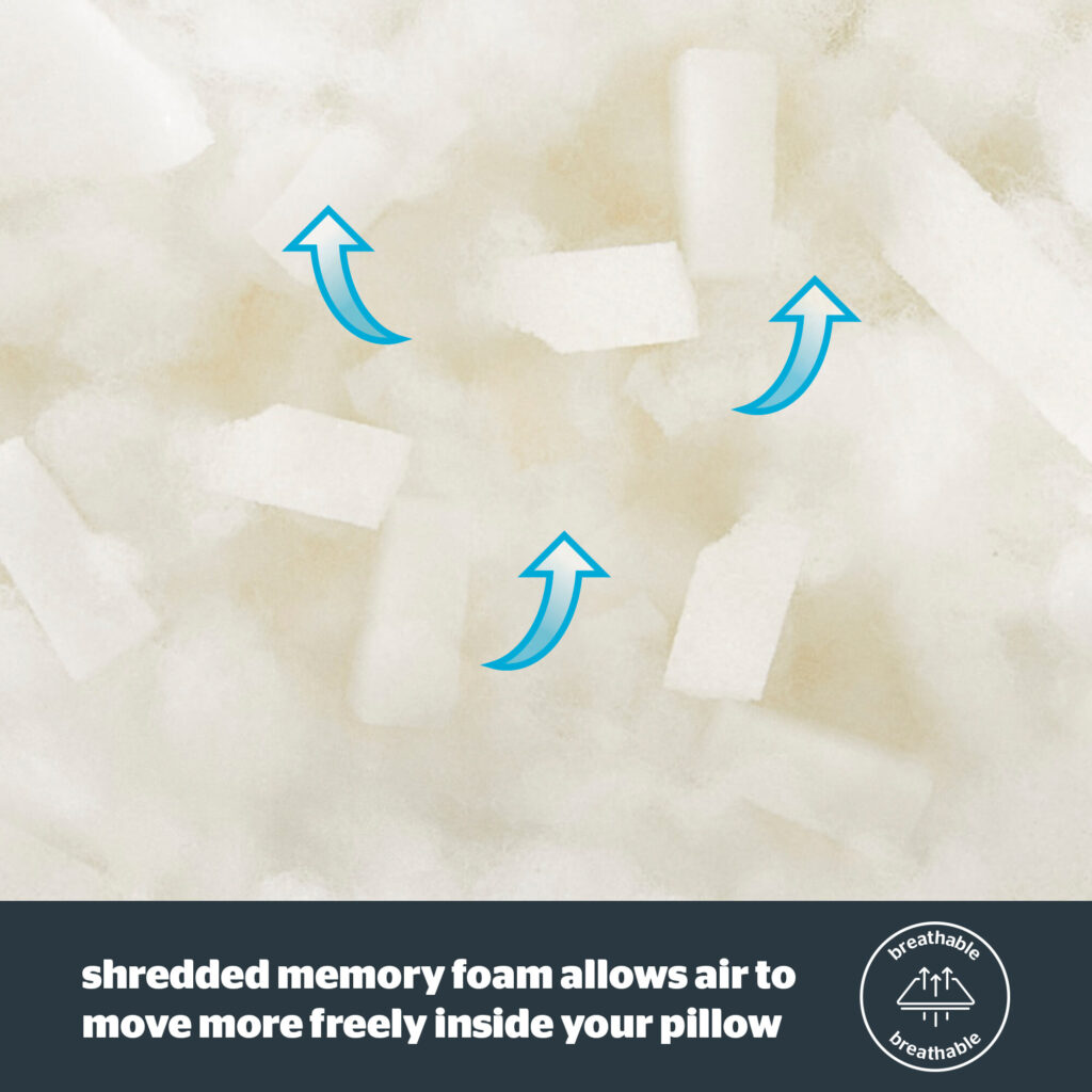 - BREATHABLE COMFORT: All the benefits of luxury memory foam, with added breathability. The premium shredded memory foam filling allows air to move more freely inside your pillow than a standard memory foam block. Providing responsive support and breathable comfort so you can enjoy deeper undisturbed sleep.