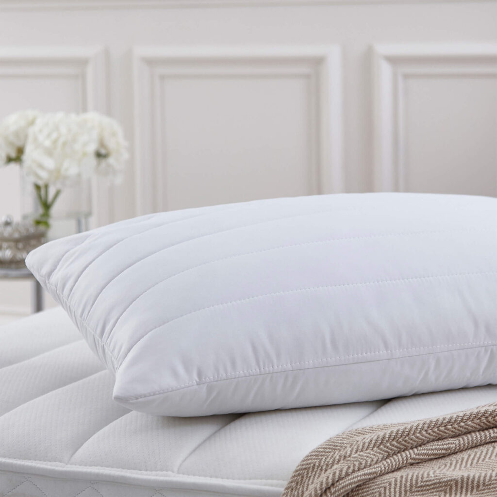 Sink back into this luxuriously quilted pillow for cushioned comfort and a great night’s sleep.