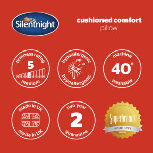 The Cushioned Comfort pillow is made right here in the UK and come with a 2 year manufacturer’s guarantee for peace of mind. The pillow is hypoallergenic which means it doesn’t contain any materials that are likely to cause allergies. It’s also machine washable so you can keep your pillow feeling fresh and hygienic for longer.