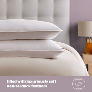 Sink your head into ultimate comfort with Silentnight. This fluffy pair of Silentnight Duck Feather pillows provide comfortable support throughout the night, ensuring you have a relaxing night’s sleep. Each pillow is generously filled with high quality duck feathers for superb softness and support. The cotton percale cover offers an ultra-sumptuous, smooth and silky feel and ensures that feathers stay firmly in place. The Duck Feather Pillows provide medium firmness and are suitable for all sleep positions.