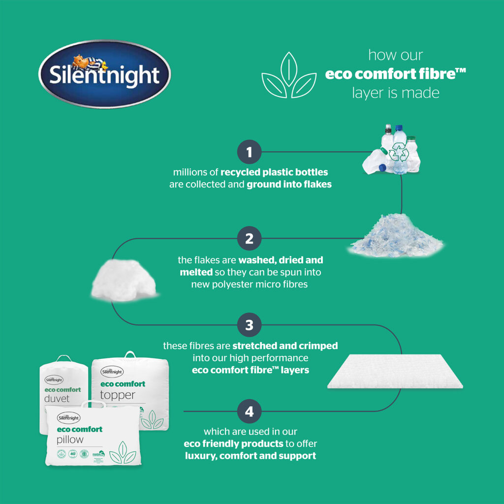 - PLANET SAVING: Filled with high performance Eco Comfort Fibres™ which are made from 100% recycled plastic bottles that have been transformed into luxuriously soft, light and fluffy fibres.