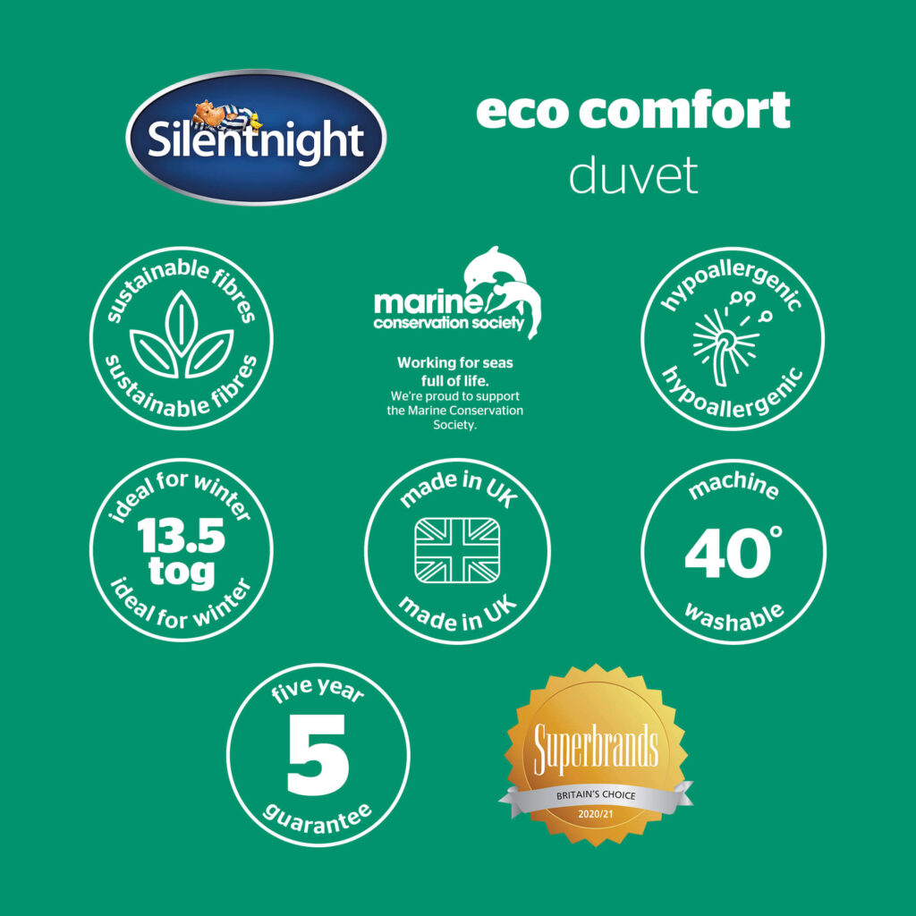 Sleep well knowing you’re creating a better tomorrow, with the sustainable Eco Comfort Duvet from Silentnight’s Eco Comfort range.
