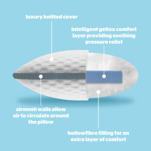 Providing pressure relief as you sleep, the breathable Geltex actively responds to your movement giving you optimal support and comfort. The Silentnight Geltex Pillow has a gel infused comfort filling surrounded soft and springy hollowfibre for supreme comfort. The Geltex features an open cell structure, which means air can pass directly through it, making it totally breathable which prevents you from overheating.