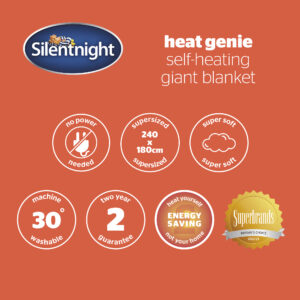 Ideal for heat seekers, the Silentnight Heat Genie Self-Heating Giant Blanket features a unique heat reflecting foil layer that reflects your body heat back to you, for extra cosy warmth without the need for electricity.
