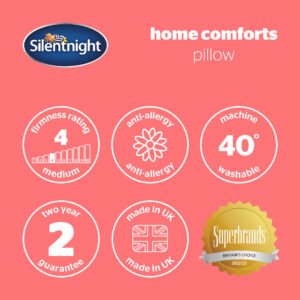 Soft and cosy for unbeatable home comfort, wherever you are. The Silentnight Home Comforts Pillows Filled with anti-bacterial fibres that actively protect against bacteria and dust mites, keeping your pillows fresh and hygienic for longer. Helps to reduce and remove allergens so that you can enjoy a restful night’s sleep.
