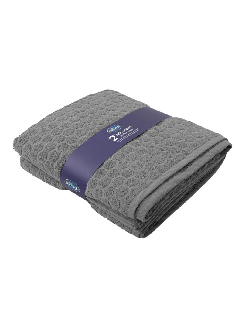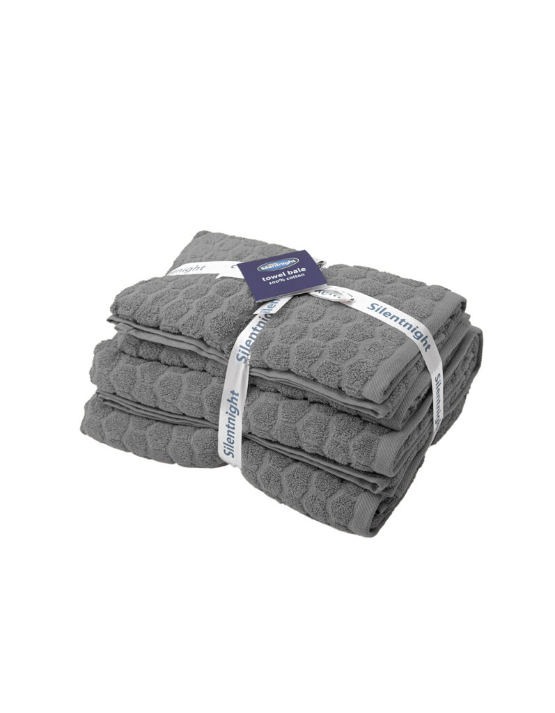 The Honeycomb design is available in Hand Towels (50 x 90cm), Bath Towels (70 x 130cm) and Bath Sheet (100 x 150cm) sizes. Each pack including two towels, whilst the four piece bale contains two Silentnight Hand Towels (50 x 90cm) and two Silentnight Bath Towels (70 x 130cm).