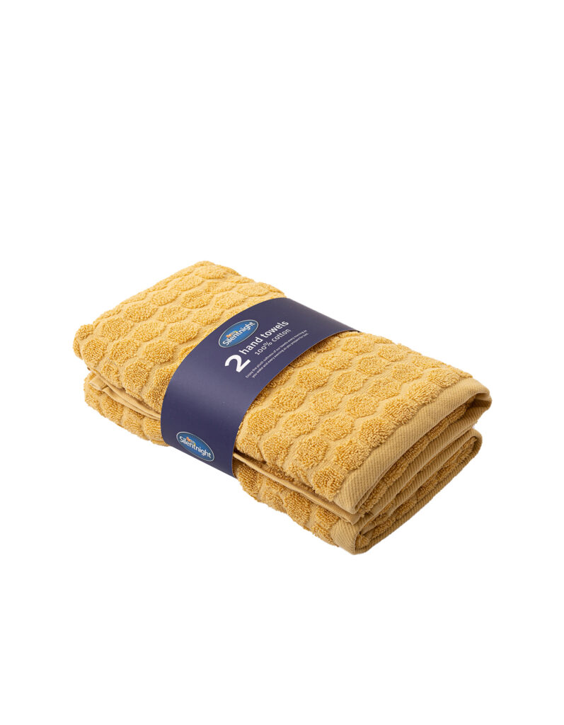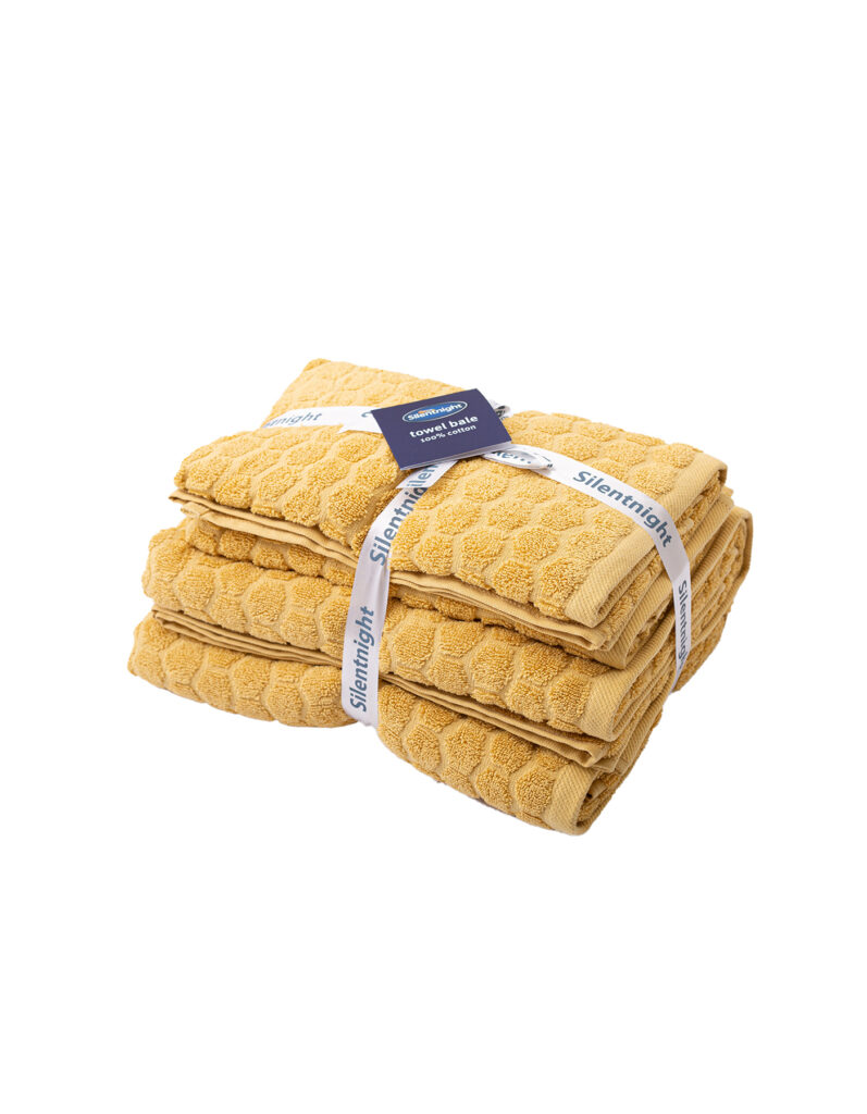 The Honeycomb design is available in Hand Towels (50 x 90cm), Bath Towels (70 x 130cm) and Bath Sheet (100 x 150cm) sizes. Each pack includes two towels, whilst the four piece bale contains two Silentnight Hand Towels (50 x 90cm) and two Silentnight Bath Towels (70 x 130cm).