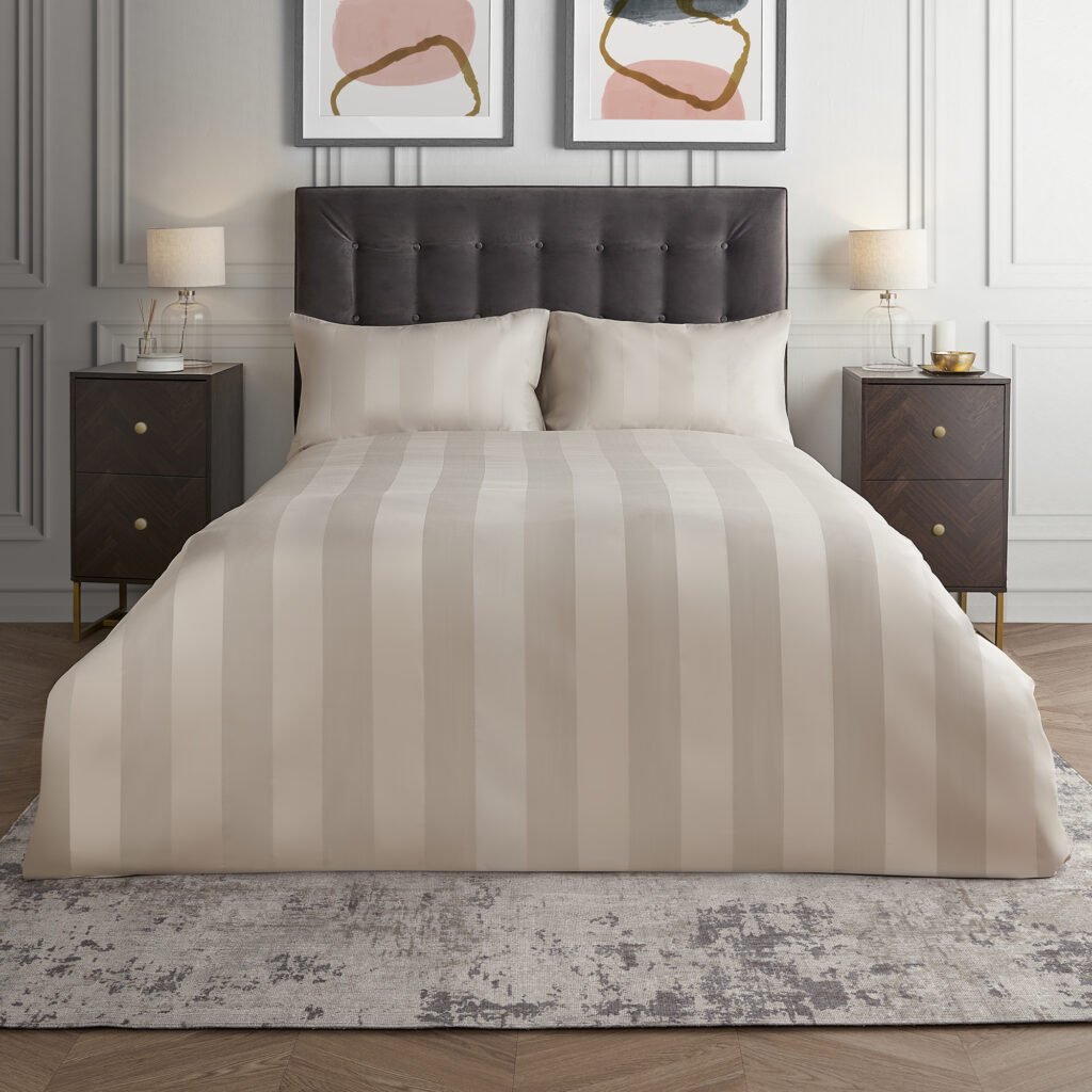 Silentnight Pure Cotton Wide Sateen Stripe Duvet Set – Champagne