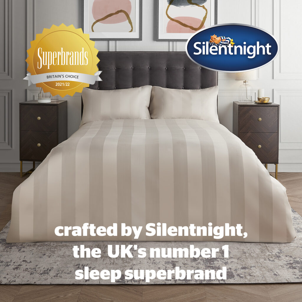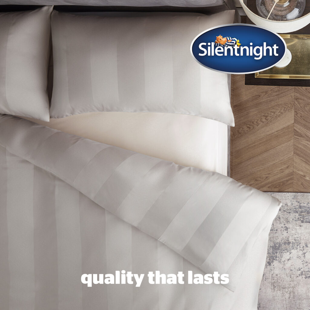 Enjoy hotel inspired luxury at home. Sumptuously silky comfort that is blissfully soft on the skin for a relaxing slumber. Crafted from 200 thread count 100% cotton the Silentnight Wide Sateen Stripe Duvet Set is durable and easy to care for, perfect for modern life.
