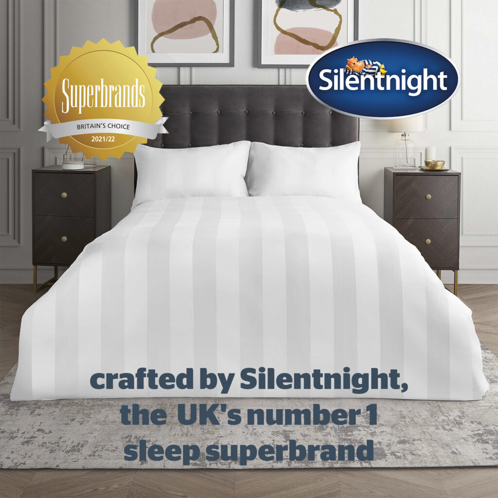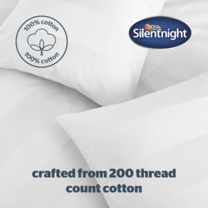 Enjoy hotel inspired luxury at home. Sumptuously silky comfort that is blissfully soft on the skin for a relaxing slumber. Crafted from 200 thread count 100% cotton the Silentnight Wide Sateen Stripe Duvet Set is durable and easy to care for, perfect for modern life.