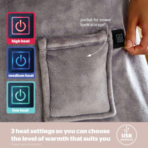 - EASY CONNECTION: Includes a 30cm USB cable for easy connection and also features a cable and power bank storage pocket built into the blanket (power bank not included. For best results use a power bank with electrical rating DC5V2A 10W)