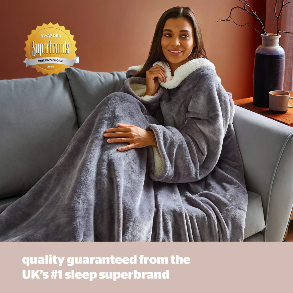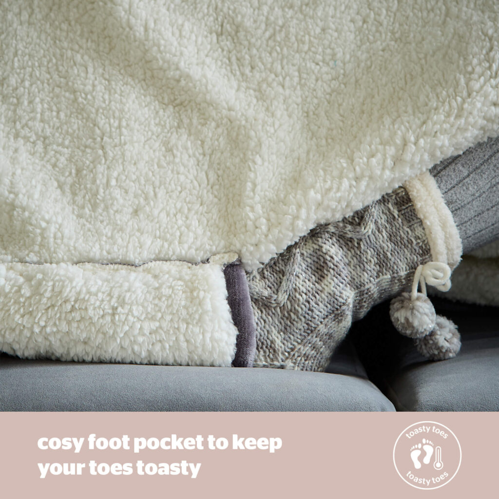 - COSY WARMTH: Supersized and with built-in sleeves, your entire body is draped in cosy, snuggly warmth. Crafted in super soft fleece and a snuggly sherpa reverse for maximum cosiness and luxurious warmth.