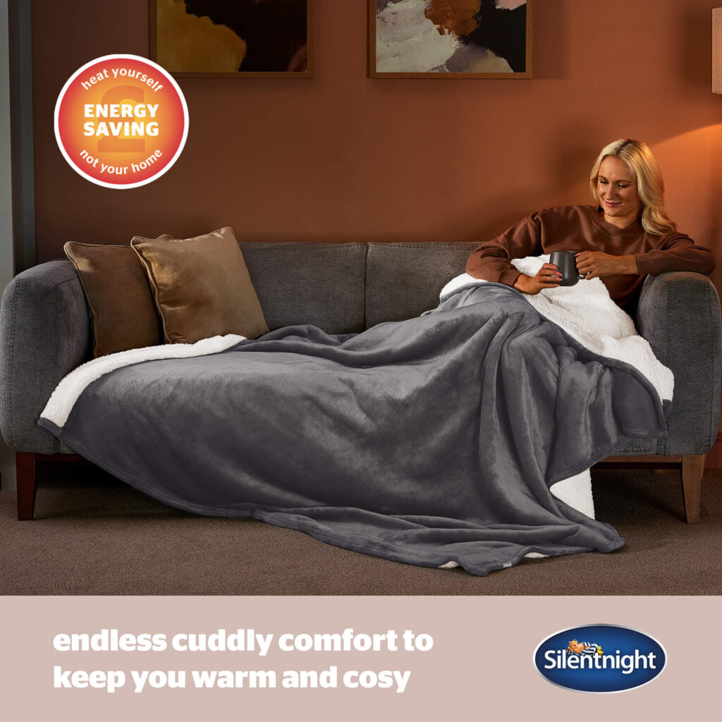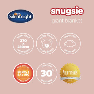 The Silentnight Snugsie Super Giant Blanket is the ultimate snuggly accessory for your home. Sumptuously soft, cuddly comfort to keep you warm and cosy as you relax and big enough to fit the whole family. The blanket is extra super-sized for ultimate comfort, measuring 270 x 230cm – our biggest and cosiest blanket yet!