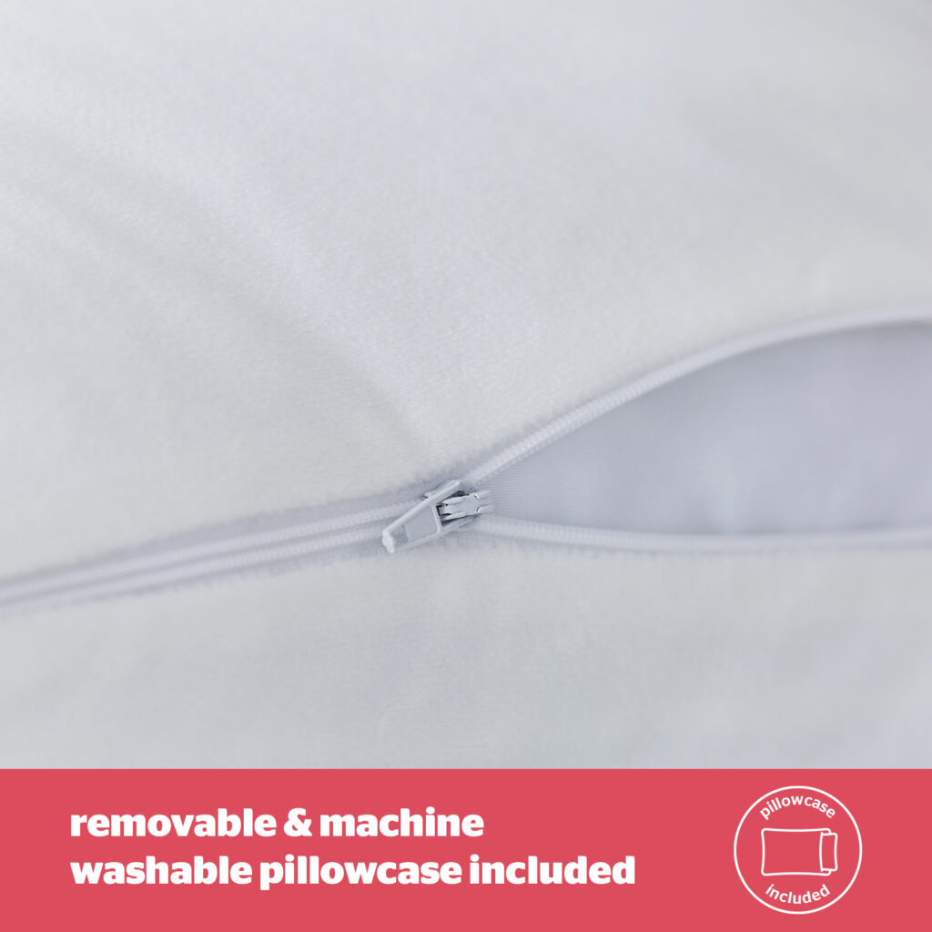 Irresistibly soft yet supportive providing complete body support when sleeping, or relaxing. The pillow is filled with fluffy fibres and wrapped in cosy microfibre offering squishy, cuddly softness for your full body. The removable velvet touch cover is effortlessly smooth and huggable.