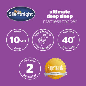 The Silentnight Ultimate Deep Sleep Mattress Topper comes with a 2 year manufacturer’s guarantee for peace of mind. The topper is hypoallergenic which means it’s kind to skin and does not include any contents likely to cause allergies, it’s also machine washable so you can keep enjoying an ultimate deep sleep.