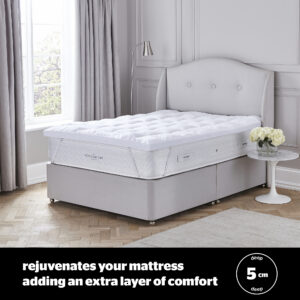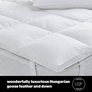 Naturally luxurious for a blissful night’s sleep. The Hungarian Goose Down Topper is designed to protect your mattress and bring it back to life by adding an extra layer of silky smoothness and comfort. The perfect way to transform your mattress, this topper is filled with clusters of wonderfully soft Hungarian goose feather and down which provides a luxurious layer of comfortable support. Encased in a smooth cotton cover which is naturally breathable and cooling to keep you comfortable.