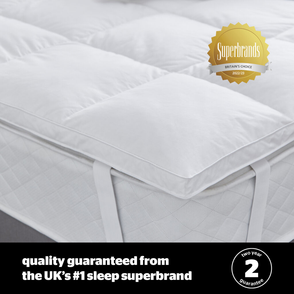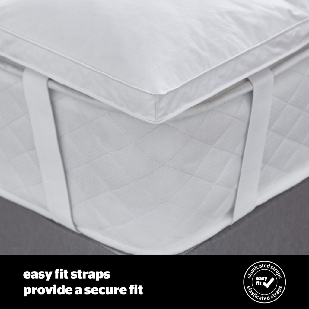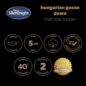 The Silentnight Hungarian Goose Down Mattress Topper features elasticated straps for a secure fit to keep the topper in place on your mattress.