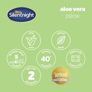 Enjoy a calm and refreshing night’s sleep night after night with the Silentnight Aloe Vera Pillow. Infused with naturally soothing, hydrating and anti-bacterial Aloe Vera, the pillow is gentle on the skin, helping to prevent irritation and leave you feeling refreshed.