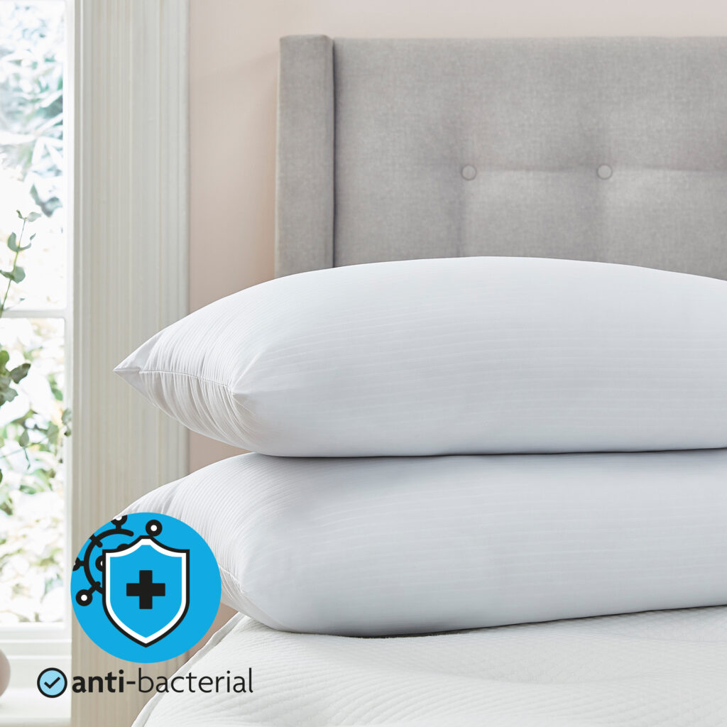- MACHINE WASHABLE AT HIGH TEMPERATURES: Machine washable at 60°C, with anti-bacterial protection lasting up to 5 washes. Washing at 60°C with a good detergent kills bacteria and viruses whilst helping you to keep your pillows fresh for a great night's sleep.