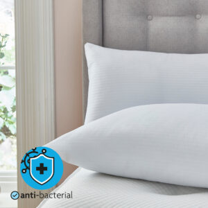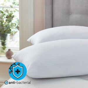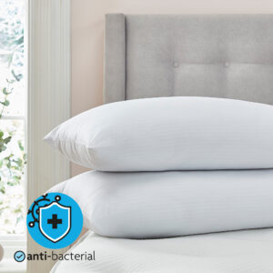 Anti-bacterial pillows have been created by Sleep Medic so that you can enjoy a healthy night’s sleep knowing that you are protected from any bacteria that might ordinarily live in your pillow. This also helps to prevent allergies and keep your pillow feeling fresh and clean, for a restful night’s sleep. Filled with DuPont fibres that are light, bouncy and durable and replicate the natural properties of cotton (and unlike other pillows, this stays the same wash after wash!) These medium support pillows are ideal for people who sleep on their back or side and are encased in a soft touch striped microfibre cover that is both soft and easy to care for and skin friendly.