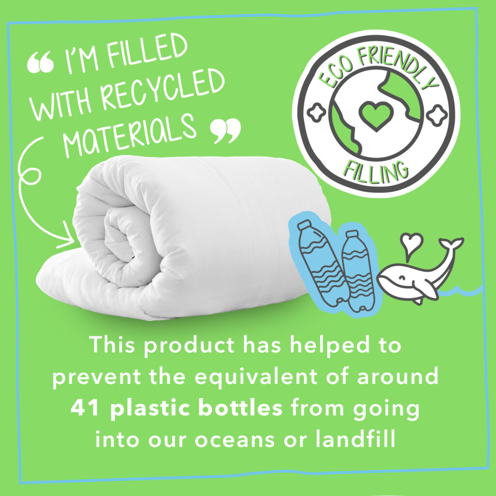- ECO FRIENDLY: The Brilliantly Bouncy duvet is filled with 100% recycled content and each product has helped to prevent at least 97 plastic bottles going into the oceans or landfill.
