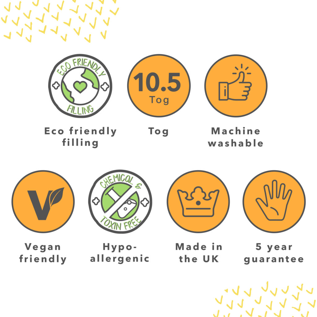 - 10.5 TOG: The perfect night-time companion all year round to keep you at just the right temperature for a truly cosy snooze fest.
