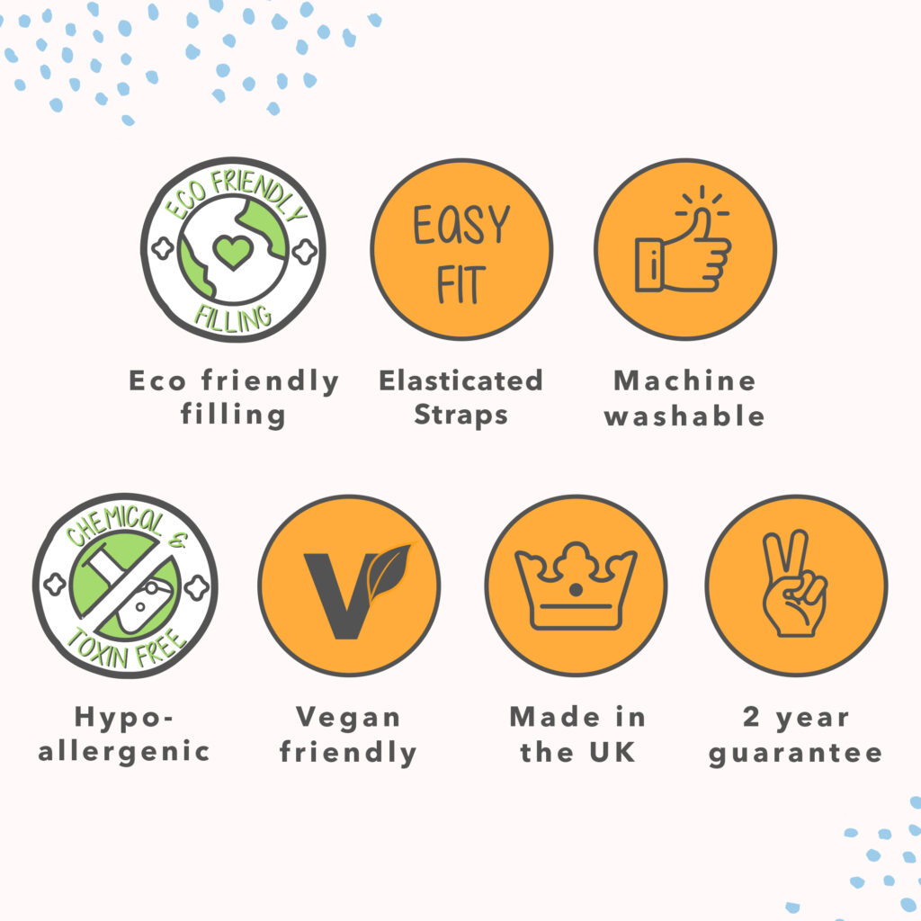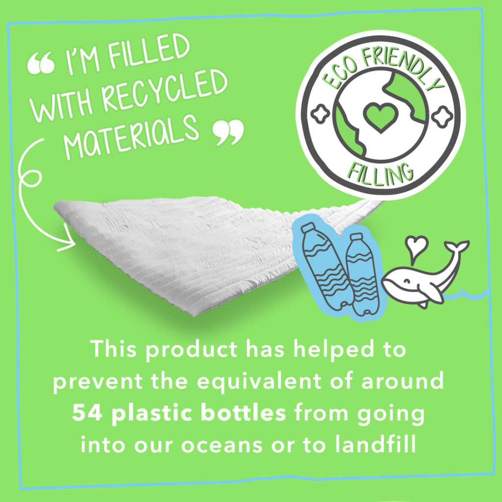 We’ve got you; your bedding is filled with 100% recycled content giving our lovely planet a helping hand. We care so you can be carefree, the squidgy fibres were once plastic bottles that have enjoyed a wonderful makeover.