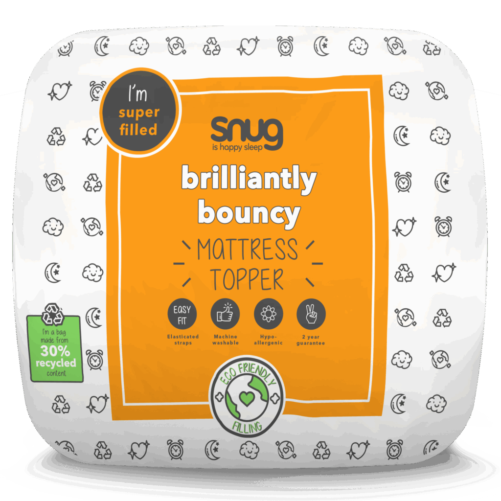 The Brilliantly Bouncy Mattress Topper is jam-packed with springy eco filling that will bounce back to shape for fabulously full, long-lasting bounciness. Not only will it protect your mattress from wear and tear, the topper adds an extra lovely layer of comfort.