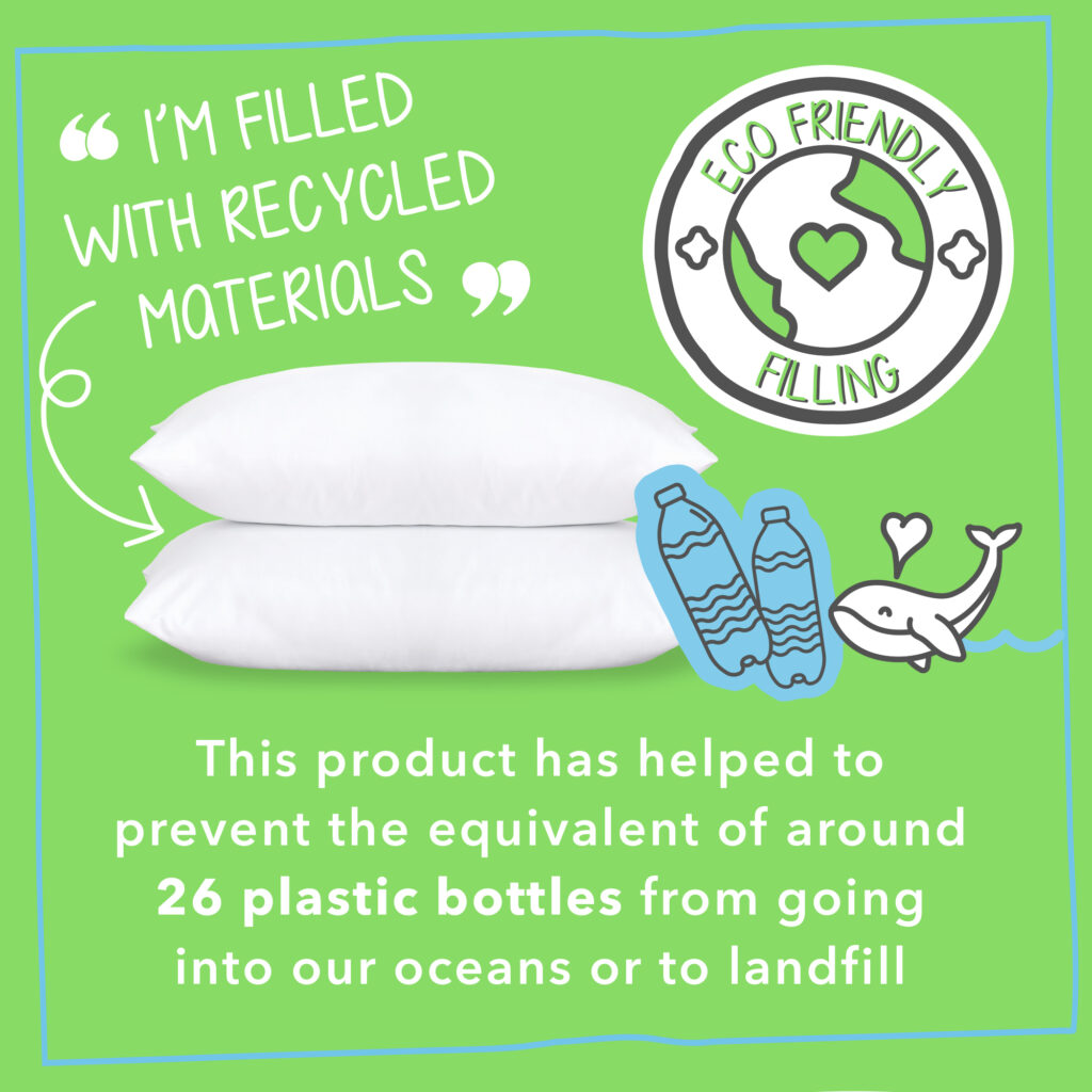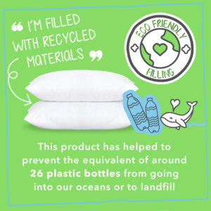 - ECO FRIENDLY: The Brilliantly Bouncy Pillow is filled with 100% recycled content and each pillow has helped to prevent 26 plastic bottles going into our oceans or landfill.