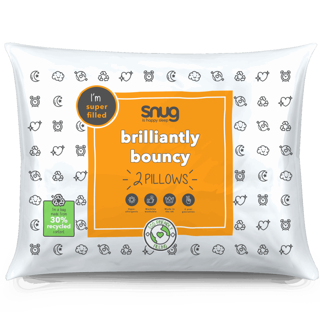 We’ve got you; your Brilliantly Bouncy Pillow is filled with recycled materials giving our lovely planet a helping hand. We care so you can be carefree, the bouncy fibres were once plastic bottles that have enjoyed a wonderful makeover.