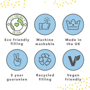 We’ve got you; your bedding is filled with recycled materials giving our lovely planet a helping hand. We care so you can be carefree, the squidgy fibres were once plastic bottles that have enjoyed a wonderful makeover. Our packaging is made from 30% recycled materials and can be fully recycled.