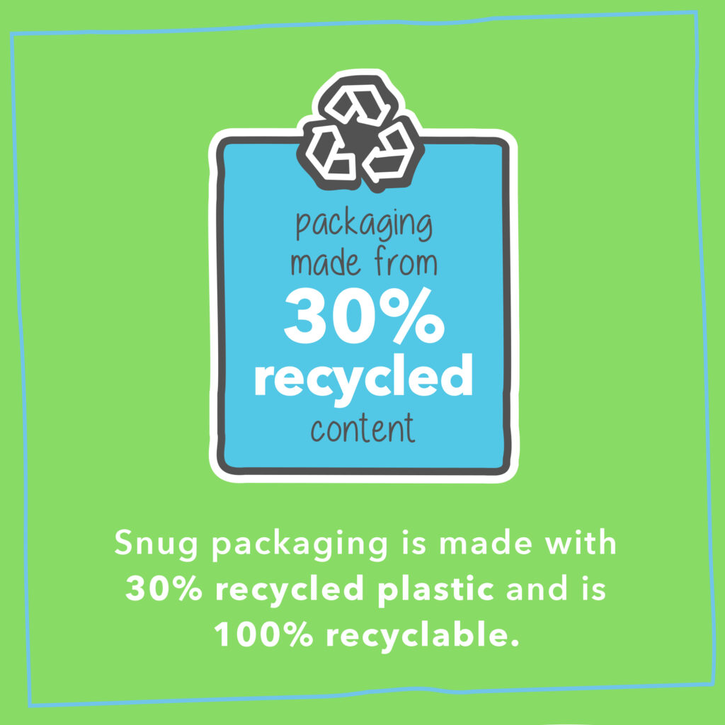 - RECYCLED PACKAGING: Snug packaging is made from 30% recycled materials, and better still, its 100% recyclable; just pass on to your local supermarket or recycling point.